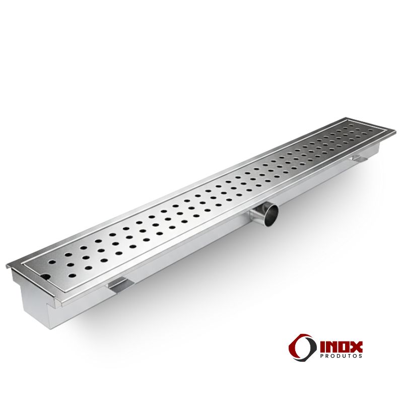 Sua saída lateral permite conexão direta à tubulação horizontal, sendo perfeita para projetos onde a rede de esgoto não está posicionada abaixo do ralo. A grelha perfurada quadriculada garante captação eficiente da água, reduz o risco de entupimentos e facilita a limpeza diária.