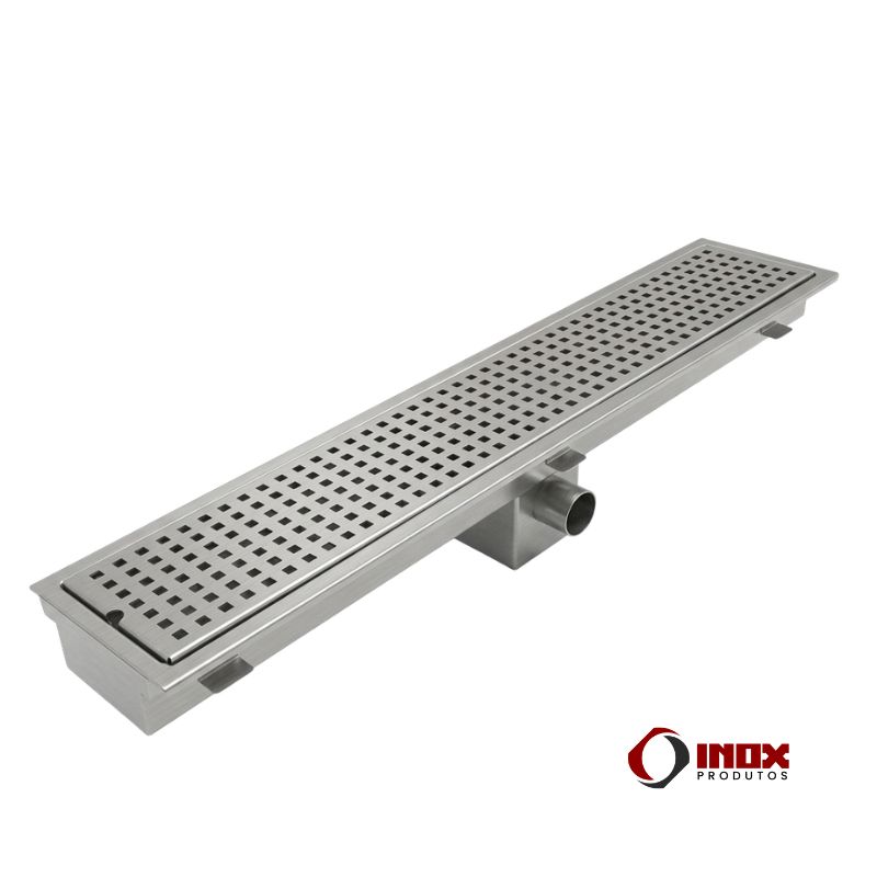 Componentes: Calha + grelha de piso + sifão inox + cesto coletor de resíduos