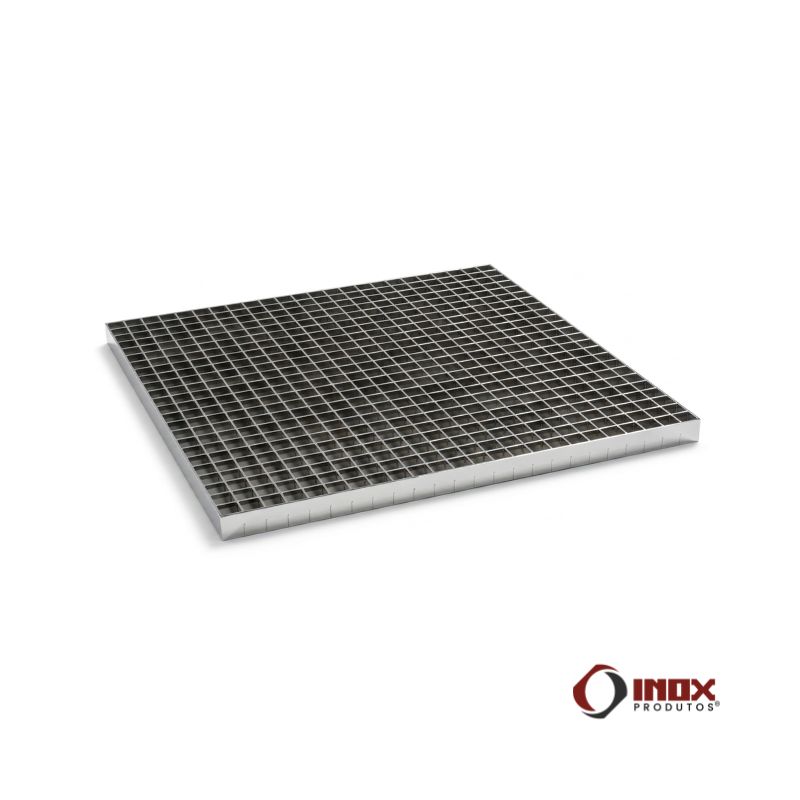 Seu sistema colmeia (quadriculado) é produzido com barras chatas soldadas em pé, garantindo estrutura reforçada e maior capacidade de carga, suportando com segurança o tráfego de carrinhos, paleteiras e equipamentos industriais.