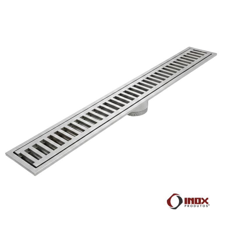 O Ralo Pro com Cesto na Saída é composto por calha em inox, grelha reforçada e cesto coletor de resíduos, garantindo escoamento eficiente da água, retenção de sólidos e impedindo a passagem de odores e insetos pela tubulação.